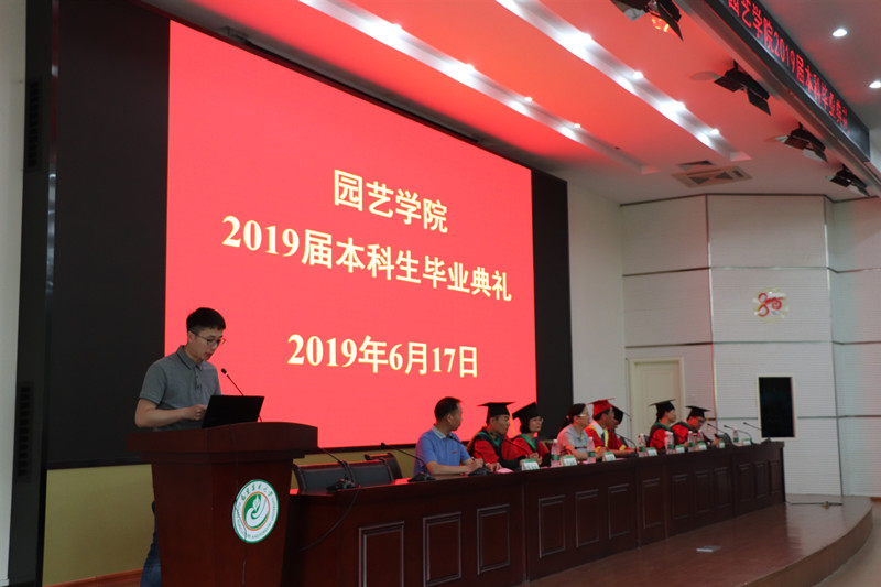 6月17日下午,园艺学院2019届本科毕业生毕业典礼在禧强楼学术报告厅举行。院党政领导、系部所主任、辅导员、教师代表、全体2019届本科毕业生和部分毕业生家长参加了毕业典礼,典礼由院党委副书记张文元主持。