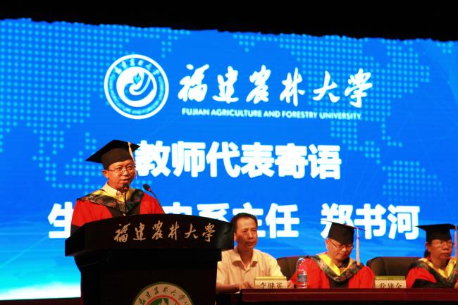 教师代表郑书河教授也在毕业典礼上作了发言,他期盼同学们牢记习得真学问需要一生的不懈努力,懂得立身守正才能行稳致远的朴实道理,在新的岗位上不忘初心,坚守信仰,做对社会有用、有贡献的人!