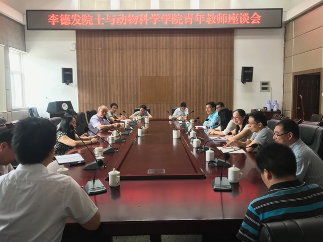 会见之前,李德发院士与动物科学学院青年教师在学校武夷厅举行座谈会。动物科学学院负责人和青年教师参加座谈会。