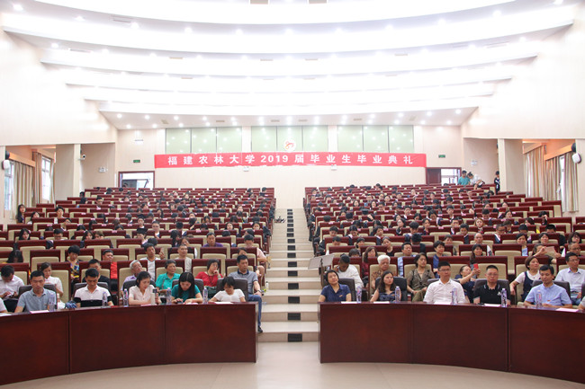 6月19日,经济学院2019届本科生毕业典礼在博学报告厅举行,经济学院党委书记范焕谦、院长王林萍、院党委副书记陈玲凤、副院长杨建州、黄和亮,各专业系主任、导师、部分教师、家长代表及本科毕业生200余人出席参加,典礼由杨建州主持。