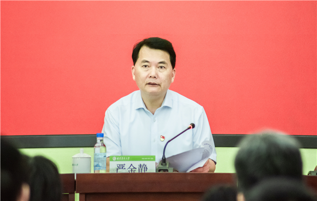 严金静代表学校领导班子就2018-2019学年的工作及校党委选拔任用干部工作情况作总结报告。他指出,一学年来,在省委、省政府的正确领导下,学校党委团结带领全校师生深入学习贯彻习近平新时代中国特色社会主义思想,认真践行习近平总书记关于教育重要论述和全国教育大会精神,全面贯彻党的教育方针,扎实落实立德树人根本任务,解放思想,改革创新,攻坚克难,奋发进取,推动各项事业取得新进展,为加快建设农林特色鲜明的全国一流大学奠定坚实的基础。