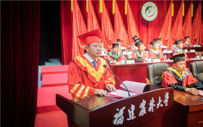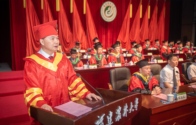 6月25日上午,我校2019届研究生毕业典礼暨学位授予仪式在校礼堂隆重举行。校党委书记严金静,校党委副书记、校长兰思仁,中国科学院院士谢联辉、谢华安,校党委副书记庄祥生、曾华平,校党委常委、纪委书记邱应龙,副校长郑宝东,校党委常委、副校长郑郁善,校学位评定委员会委员,本学年有指导博士毕业生的博士生导师出席毕业典礼。毕业典礼由校党委常委、副校长黄炎和主持。