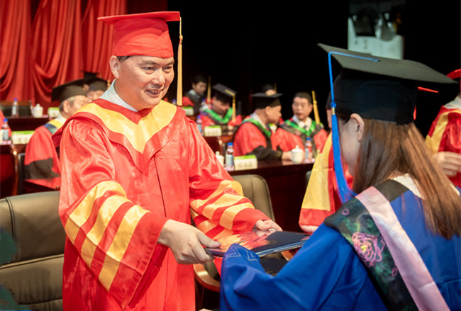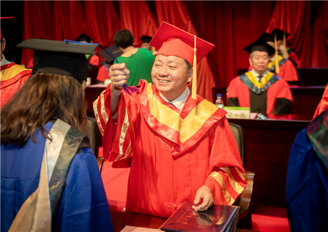 毕业典礼上,兰思仁宣读了《关于授予2018年下半年和2019年上半年博士、硕士学位的决定》,研究生导师关雄教授、公共管理学院毕业生余文梦同学分别作为教师代表和毕业生代表作了发言。主席台就座的前排领导分别为博硕士毕业生扶正流苏、授予学位并颁发证书。学校还给每位博硕士毕业生赠送一本《习近平新时代中国特色社会主义思想学习纲要》,希望毕业生学深悟透,用新思想武装头脑、指导实践、推动工作。