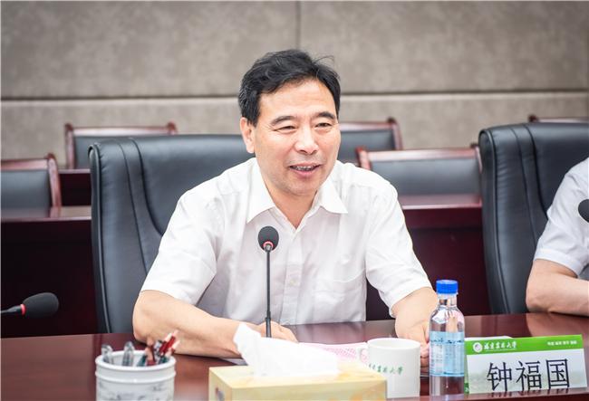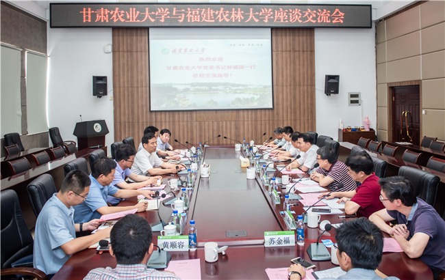 7月1日下午,甘肃农业大学党委书记钟福国一行莅校考察交流。校党委书记严金静,校党委副书记庄祥生,校党委常委、副校长黄炎和在明德楼武夷厅与他们座谈。