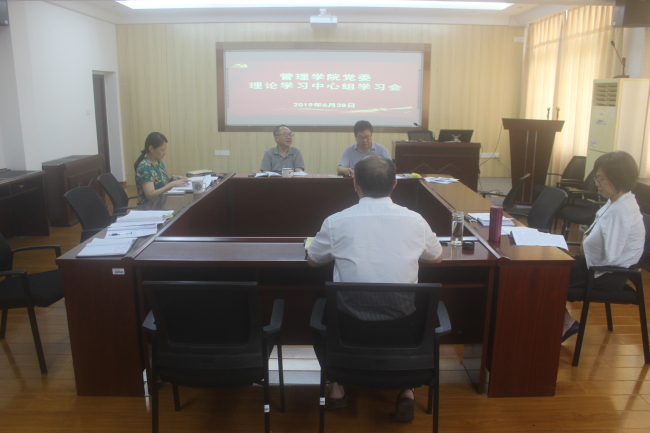 6月28日上午,管理学院党委理论学习中心组召开专题学习会,学院党委书记谢志鸣主持会议。