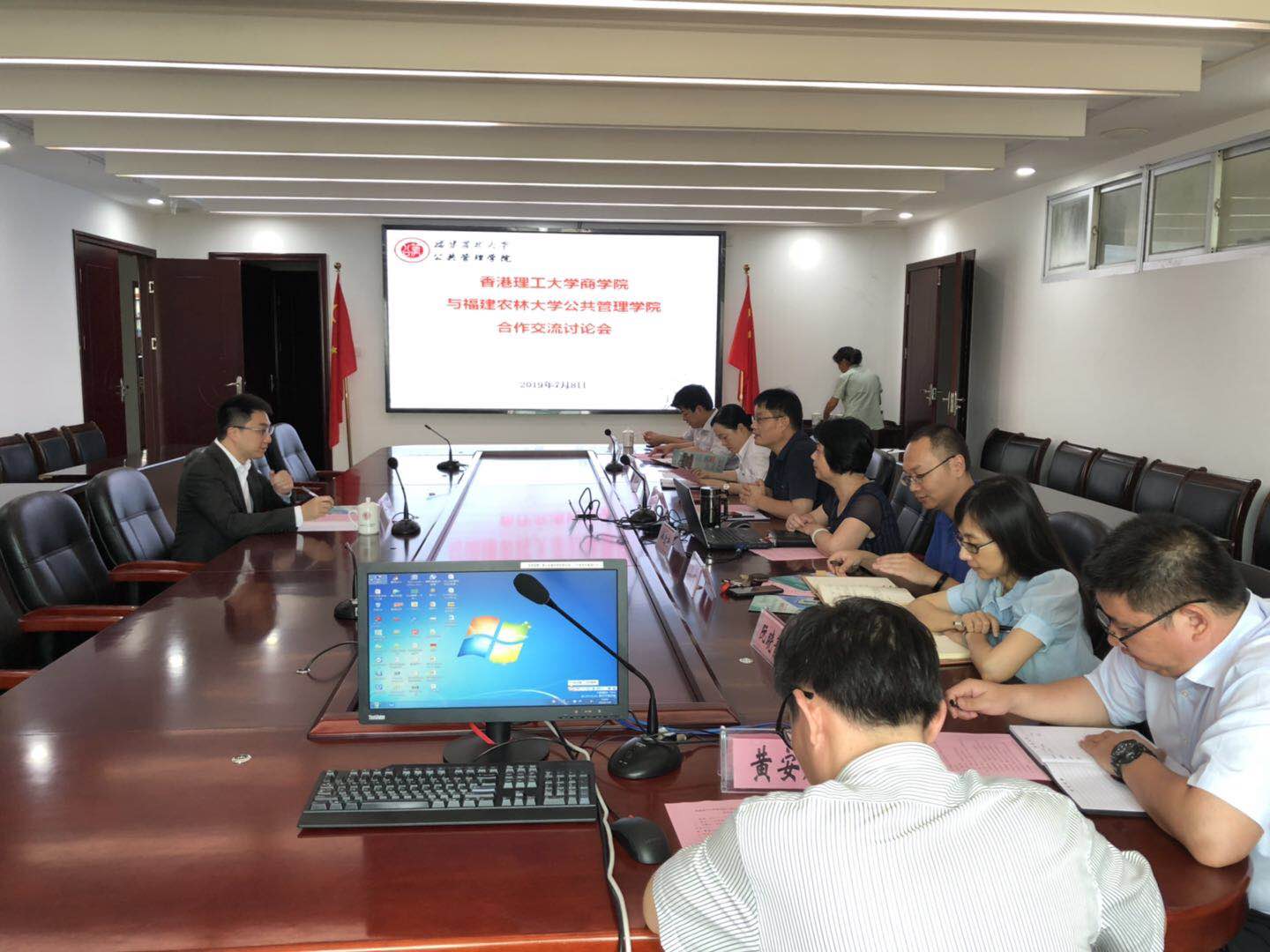 7月9日下午,香港理工大学商学院副院长陆海天应邀莅临公共管理学院讨论两院合作事宜。我校研究生院副院长黄玲,国际合作与交流处、台港澳事务办公室(合署)副处长刘敏,以及公共管理学院党政领导班子出席会议。会议由院党委书记曾起郁主持。
