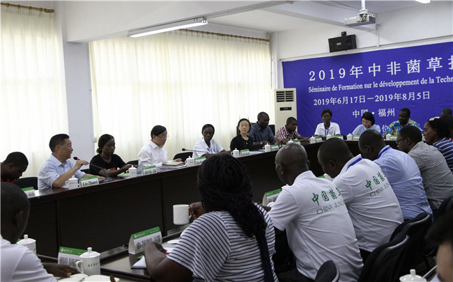 “无论你来自哪里,只要提到菌草,我们就是好朋友!”在研究中心,于伟国与学员们围坐在一起座谈交流。他说,习近平总书记十分关心支持菌草技术的研究和推广,亲自推动全国首个菌草科学实验室的建设,在许多国际场合大力推介菌草技术。图瓦德拉总统也专程来闽访问,推动菌草技术合作。深化两国菌草等农业技术合作,是我们共同的使命和责任。福建将深入贯彻落实好两国元首达成的共识,继续加大对菌草技术援外工作的资金、基础设施等支持力度,创造性运用好菌草技术等资源,更好地推动与“一带一路”沿线国家的合作交流,携手共建人类命运共同体。他说,“菌草”让我们有美好的际遇,也让我们的友谊联结更加紧密。你们是两国友好交流合作的见证者、参与者、践行者,让我们共同努力为推动中国与中非友好关系作出更大贡献。