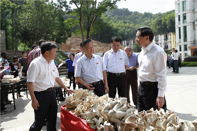 7月12日上午,省委书记于伟国来到我校国家菌草工程技术研究中心,看望正参加中非菌草技术发展研修班的学员。