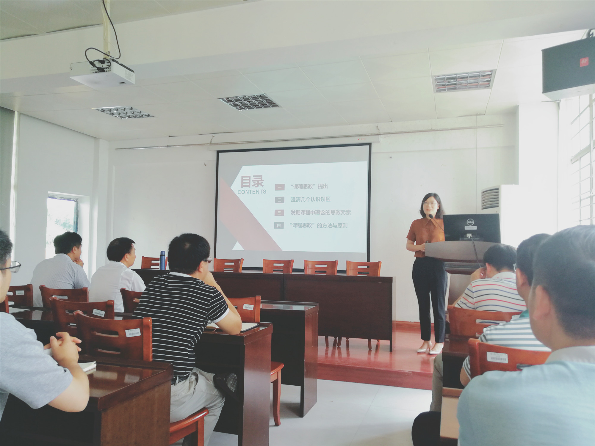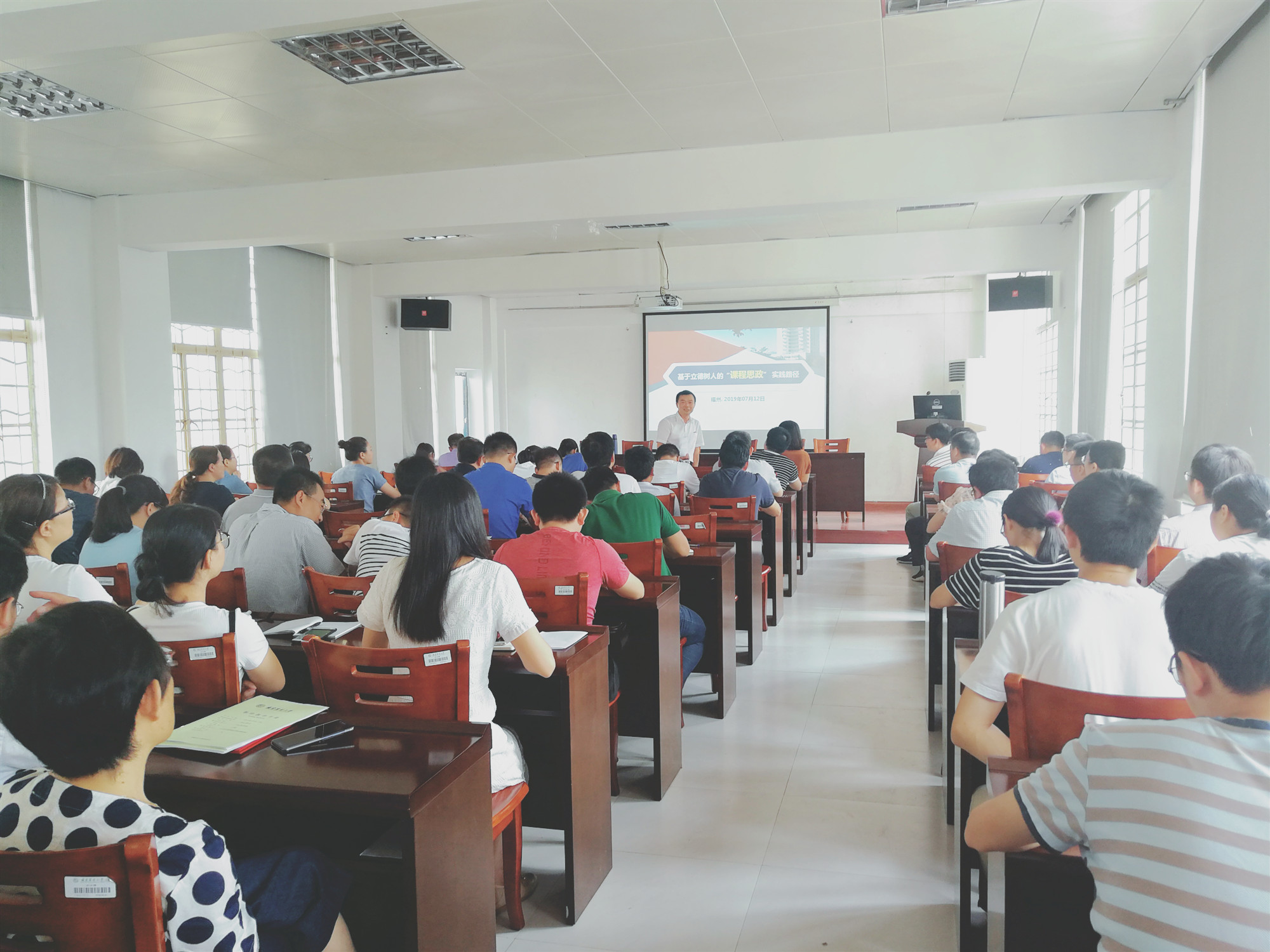 黄秀玲老师从“课程思政”理念的提出;“课程思政”的认识误区;“课程思政”元素挖掘和“课程思政”的原则与方法等方面进行深入的阐述。报告过程中,黄秀玲老师理论联系实际、案例经典、深入浅出。这场精彩的报告让教师们了解了“课程思政”提出的历史背景,“课程思政”与“思政课程”的区别,明确了专业课实现“课程思政”的要素、手段和方法。本次报告得到了全院教师的一致好评,教师们受益匪浅。