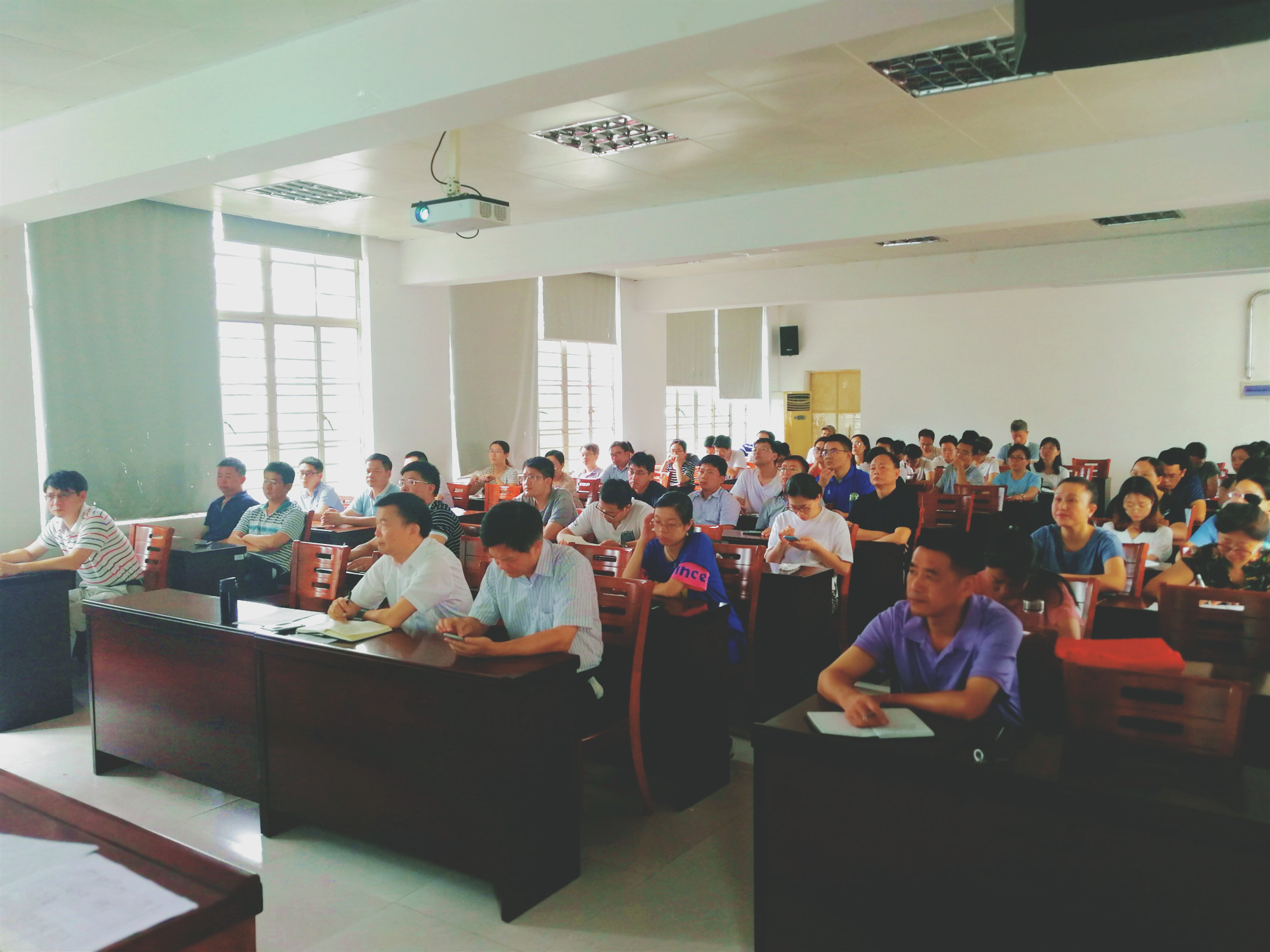 全院教师认真听取报告