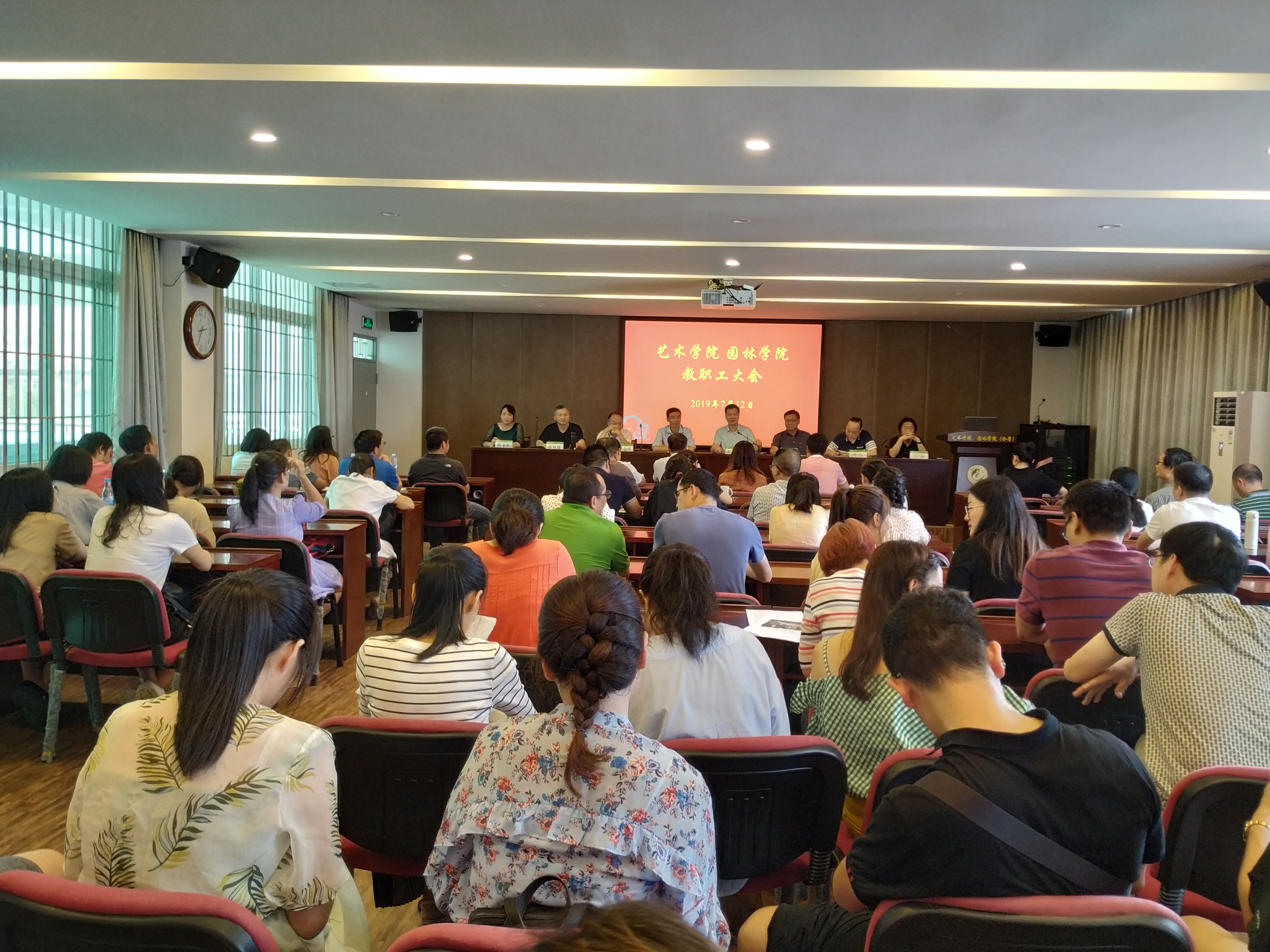 7月12日下午,艺术学院园林学院在综南附307会议室召开全院教职工会议,会议由学院党委书记陈为德主持。院长张飞萍、院党委副书记曹伟、副院长黄启堂、丁铮、陈祖建、陈小英出席会议,全体教职工参加会议。