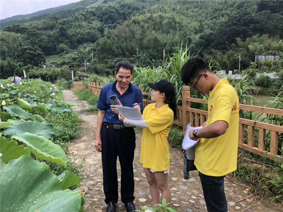 通过走访调研,队员们提出制作上界村特色文创产品(特色明信片、吉祥物等),推广宣传乡村旅游,促进当地特色白莲产业经济发展,助力脱贫攻坚的相关建议和方案。带着掌握的第一手资料,队员们来到村党群服务中心,与当地村干部就如何更好建设上界村召开座谈会。村干部们表示,党中央对乡村建设愈来愈重视,好的政策极大地带动了乡村的发展,也给村民对美好乡村的建设增加了一份动力。