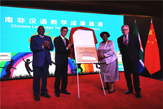 莫采卡部长、格罗布勒大使等与会嘉宾纷纷表示中非文化源远流长,盛赞中国在中非文化交流融合方面做出的努力和贡献,并期待两国有更多的合作。随后,根据中南双方商定,正式宣布将每年9月17日定为“南非中文日”。林松添大使、莫采卡女士等嘉宾一起为“南非中文日”牌匾揭幕。