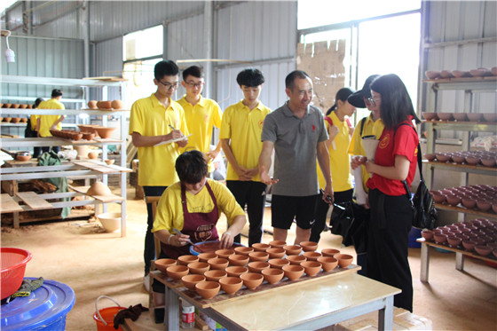 在暨子文的带领下,队员们一步步学习了建盏制作所需要的拉胚、修胚、素烧和上釉等十三个环节。开云网页版2017级农业资源与环境专业的王丹表示,每一步都十分细致入微,第一次看到建盏的全手工制作过程。更加令我惊叹的是,他们对建盏质量要求之高,但凡未达到出品要求,便会被扔入‘废池’中。
