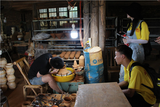 为了深入了解建盏的制作过程,队员们在当地居民的介绍下,来到了建盏的起源地之一——水吉镇青田村,走进当地的“传古堂”。据“传古堂”的负责人暨子文介绍,“传古堂”的建盏技术指导来源于多位传承人、工艺大师,该地制作的建盏有其独到之处,其原料来源于当地特殊的泥质,并通过一系列完整的制作工艺环节,最终“入窑一色,出窑万彩”。