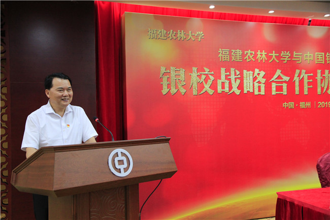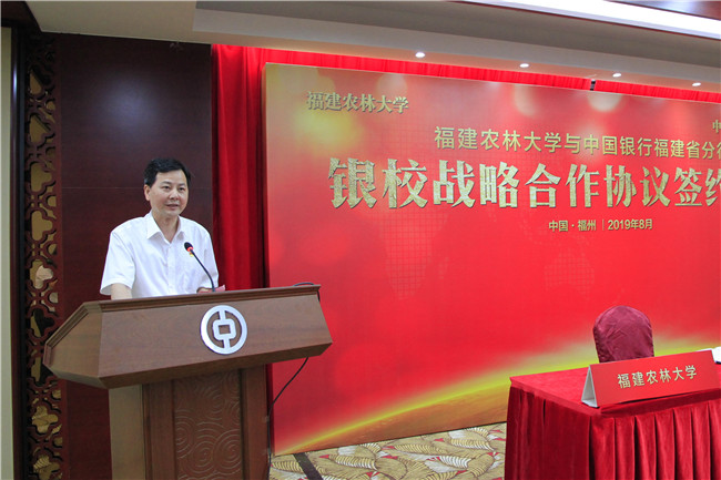 8月19日下午,我校与中国银行福建省分行在中银大厦第三会议室签署战略合作协议。中国银行福建省分行党委书记、行长杨展鹏,首席客户经理、副行长宋福宁,资深客户经理黄慧艳,我校党委书记严金静、副校长郑郁善出席签约仪式。签约仪式由中国银行福建省分行行政事业机构部黄志凌总经理主持。