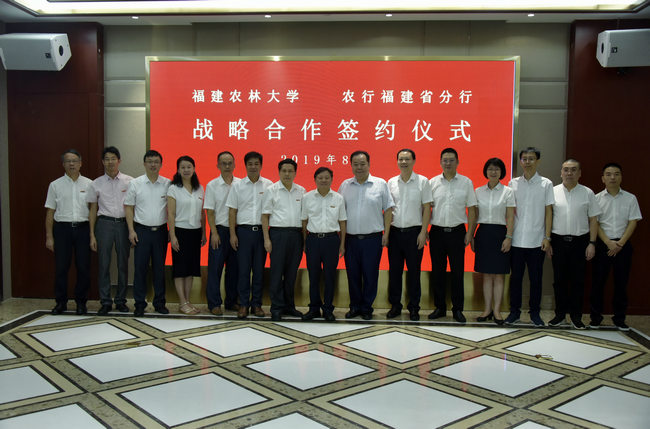 8月29日上午,我校与农业银行福建省分行在农行福州财富管理中心签署战略合作协议。省分行党委委员、副行长,福州分行党委书记、行长沈明池,省分行大客户部总经理丁啟强,福州分行党委副书记、副行长叶亮,我校校长兰思仁、副校长郑郁善出席签约仪式。