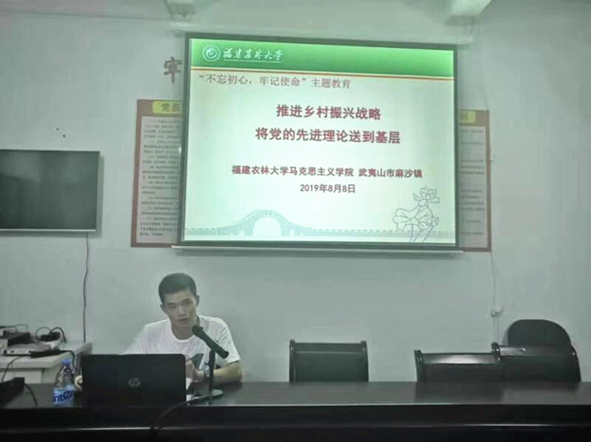 马克思主义学院于峰、陈文、温福英、周谟錾、刘淑兰、江书陆、罗贤宇等教师分别为村民作“不忘初心—纪念马克思诞辰201周年”、“习近平青年知情岁月”、“乡村振兴的人才效应”、《继承法案例》、“乡贤文化助推文明乡风建设”、“怎样成为内心强大的人”、《乡村生态振兴》等主题宣讲活动,给村民奉献了一堂堂生动形象的课程。