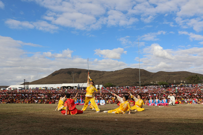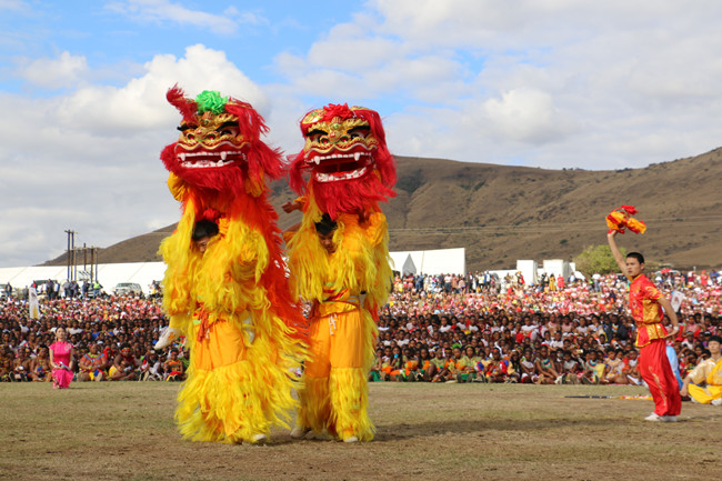 下午两点,两只雄狮,齐齐踏着鼓点上台,一场展现中国魅力的饕餮盛宴就这样拉开了帷幕。中国传统舞蹈《婺韵》,把中国姑娘婀娜窈窕的美表现得淋漓尽致;《梨花颂》京韵十足,如同天籁,余音绕梁,三日不绝;竹笛《扬鞭催马运粮忙》表演,热情奔放,让南非人民听得心醉神迷;武术表演《卧虎藏龙》更是高潮迭起,威武雄壮、气势磅礴的背景音乐、运动员虎虎生风的身姿,引来了现场观众阵阵欢呼声和惊叫声。