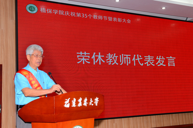 此次活动是学院英龍文化建设的重要内容。大会为近五年退休的教师举行了荣休仪式,表彰了教学名师、优秀教师、优秀教育工作者、上年度优秀学位论文指导老师,近三年入职的青年教师进行了集体宣誓,荣休教师代表谢联辉院士分享了“坚持一个引领、两个支撑、三个面向、四个推动、五个意识”的体会和感受,学生代表以歌曲《难得想起他》和诗朗诵《老师老师》向老师致以节日的问候和诚挚的感谢,学院党委书记余新然和院长侯有明分别作了讲话。