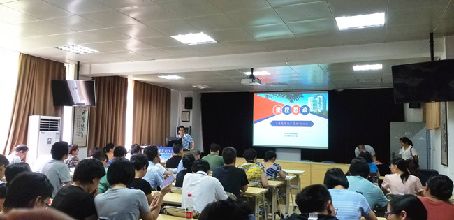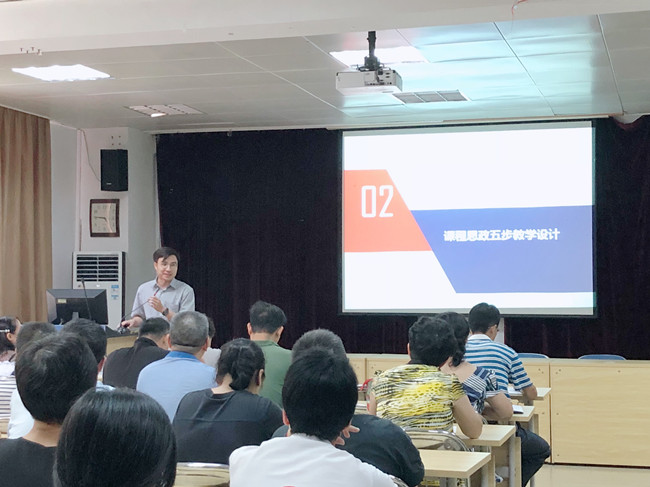 陈煜和吴旭平用三段接力式的讲座展示了课程思政的教学策略。陈煜介绍了课程思政的内涵,重点阐述了课程思政与思政课程的区别,以及如何在专业课堂上融入思政元素。吴旭平向大家展示了课程思政的五步教学设计法,详述从连接、呈现、体验、反思和应用上如何进行课程思政的操作;最后,陈煜用实际教学案例分析课程思政的教学策略,让各位老师领会课程思政在专业教学中的应用。