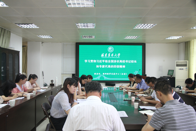 近日,教务处召开全体人员学习会,专题学习习近平总书记给全国涉农高校的书记校长和专家代表回信精神。学习会由教务处处长吴祖建主持。