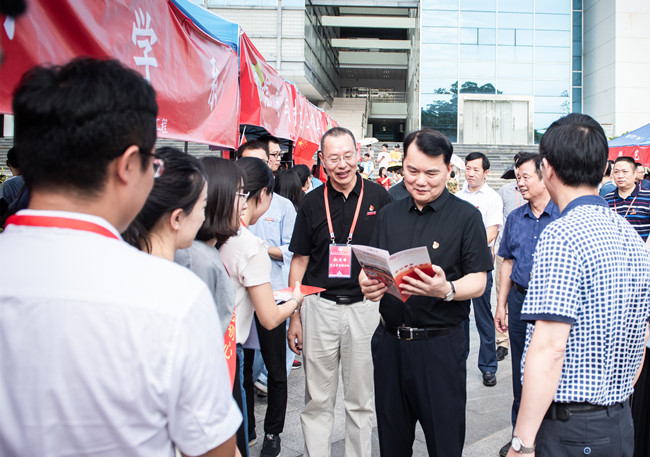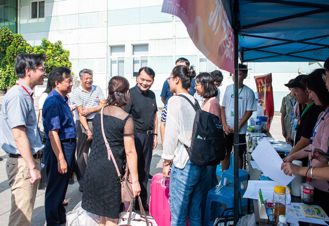 初秋的开云网页版,校园里处处充满着生机盎然、喜庆祥和的氛围,来自五湖四海的2019级新生陆续来校报到。9月15日下午,校党委书记严金静,校党委副书记曾华平,校党委常委、副校长黄炎和带领学校有关部门负责人,先后来到位于明德楼和逸夫图书馆前广场的迎新现场,看望慰问新生和家长,检查指导学校迎新工作。
