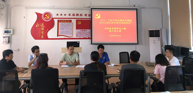 9月12日中午,园艺学院设施农业科学与工程教工党支部在园艺学院党员活动室召开学习会,专题学习习近平总书记给全国涉农高校书记校长和专家代表的回信精神。学习会由支部书记邱栋梁主持,支部全体党员参加了会议。