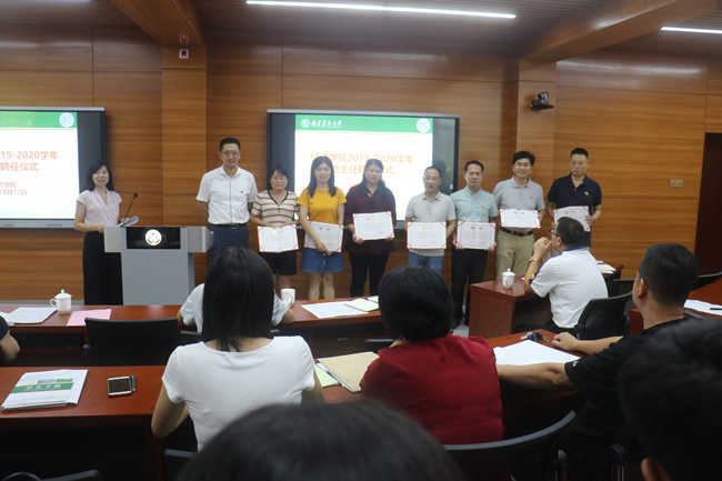 会上,林栋和王林萍分别为18位2018级和2019级新生班主任颁发聘书。会议对上学年的班主任工作进行总结,肯定了班主任的工作,同时,对班主任提出了期望。会议强调,希望班主任紧紧围绕落实立德树人根本任务,发挥在学生培养过程中的组织、教育和管理职能,认真履行岗位职责,确实完成班主任“五个一”工作;要坚持以立德树人为根本,以强农兴农为己任,将学生培养成为知农爱农的新时代“三农”事业发展的生力军,为培养德智体美劳全面发展的社会主义建设者和接班人做出贡献。