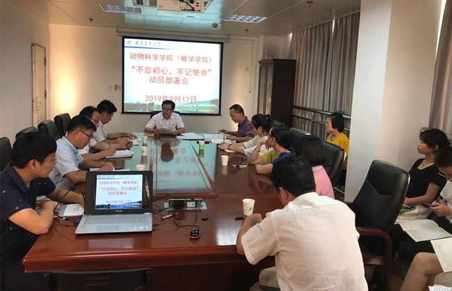 9月17日,动物科学学院党委召开“不忘初心、牢记使命”主题教育工作部署会。学院党委委员、各党支部书记和全体科级干部参加,会议由院党委副书记(主持工作)黄毅军主持。
