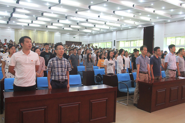 开学典礼在全体师生齐唱国歌声中拉开帷幕。