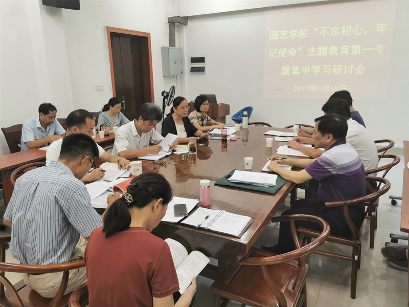 9月19日下午,园艺学院召开“不忘初心 牢记使命”主题教育第一专题集中学习研讨会,院党委书记张华英主持会议并带头发言。校第二巡回指导组组长雷旭东,指导组成员张明辉、陈伟、胡之光到会指导。学院党政班子成员、党委委员、全体教工党支部书记参加了会议。