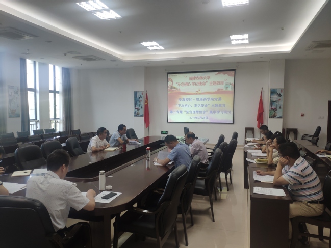 9月25日,安溪校区·安溪茶学院党委召开党委理论中心组扩大会议,开展“不忘初心、牢记使命”主题教育第二专题集中学习研讨,围绕“坚定理想信念”这一主题进行学习研讨交流。院党委书记雷国铨主持会议,党委副书记、安溪校区管委会主任、院长林金科作重点发言,中心组成员、科级干部、党支部书记参加会议。