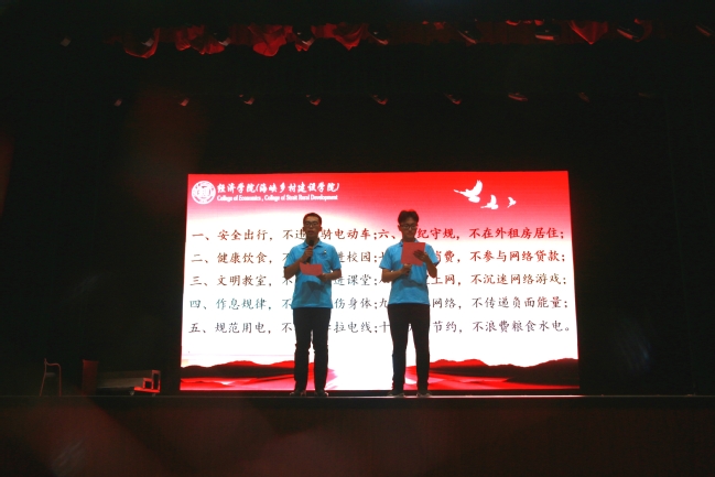 在2位学生代表的领誓下,在场全体学生起立宣誓“十不”倡议,承诺养成良好习惯,做最好的自己,争做新时代文明农林大人。