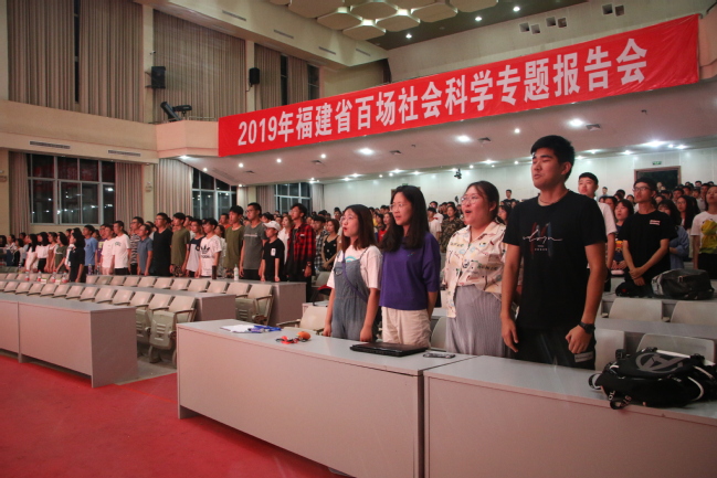 9月25日晚,经济学院在校大礼堂开展了“唱响国歌,礼仪献礼新中国成立70周年”活动。国家高级礼仪培训师、全国专业人才教育专家委员会礼仪委员朱玉华、学院党委副书记陈玲凤,辅导员以及2019级全体新生360余人出席此次活动,活动由朱玉华主讲。