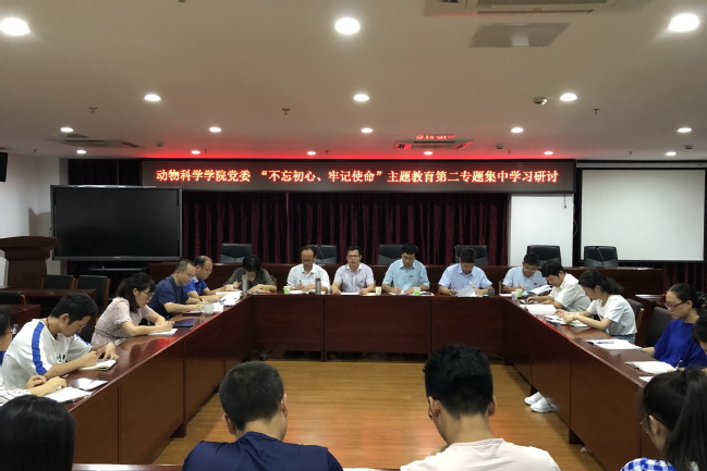 9月26日,动物科学学院党委开展“不忘初心、牢记使命”主题教育第二专题集中学习研讨。学院党委委员、民主党派和无党派代表、各党支部书记、各系主任、全体科级干部、辅导员、学生党员代表参加了学习会。会议由院党委副书记(主持工作)黄毅军主持。
