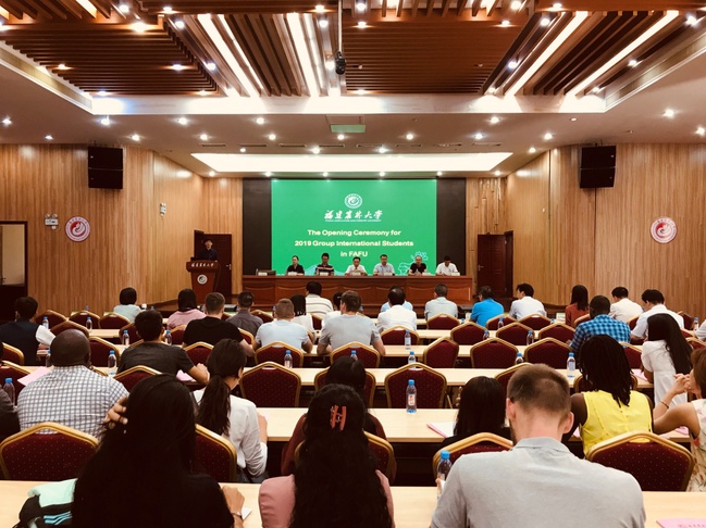 副校长郑宝东致辞。他介绍了我校近年来国际化办学取得的成效,并对2019级来华留学新生提出了四点希望和要求:积极融入,深入了解中国的风土人情,尽快适应在福建和学校的生活;努力学习,过好语言关,掌握过硬的专业知识;遵规守纪,要了解并遵守中国的法律法规以及学校的校纪校规,理解、支持并服从学校的管理;主动交流,在学习了解博大精深的中华文化的同时,把各自国家的文化介绍到中国以及周围的老师和同学们,做跨文化交流的友谊使者,为深入实施“一带一路”战略,作出积极的贡献。他祝愿留学生们在我校度过一段健康、快乐、安全、成功的留学生活。