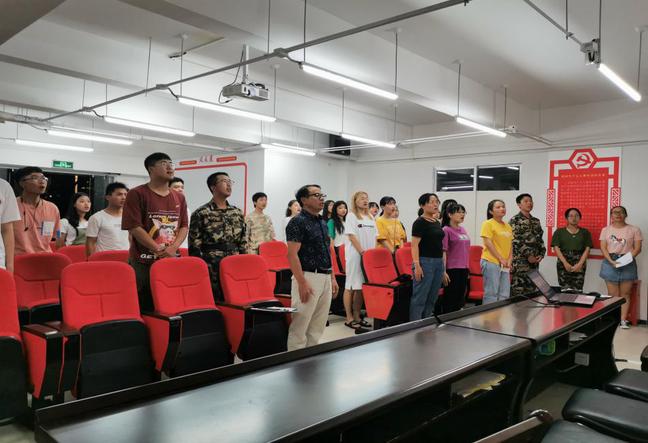主题班会前,与会人员齐唱国歌,热烈庆祝新中国70华诞。随后,与会人员就学习心得分别进行发言。各班不断创新活动形式,增强活动气氛。其中,2019级土管1班加入了先进人物知识竞答和横幅签名仪式等。