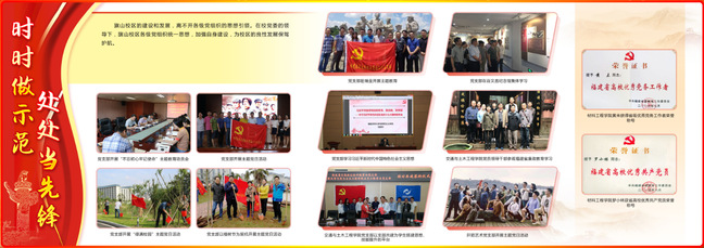 图片展分为“忆峥嵘岁月看今朝伟业”、“时时做示范处处当先锋”、“激扬青春创新有为”三个部分,分别展示了旗山校区从开始建设到投入运行的巨大变化、校区各级党组织发挥的先锋模范作用和学院在立德树人、教学、科研、创新创业等方面取得的成就。