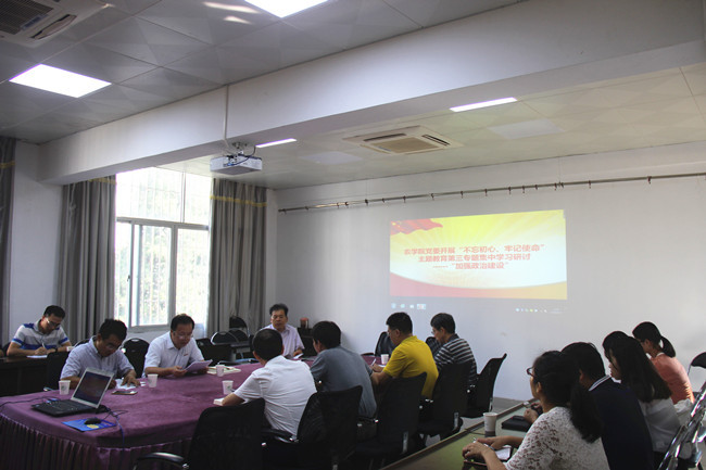 9月27日上午,农学院党委在学院三楼小会议室开展“不忘初心、牢记使命”主题教育第三专题集中学习研讨,农学院党政班子成员围绕“加强政治建设”这一主题进行研讨交流。