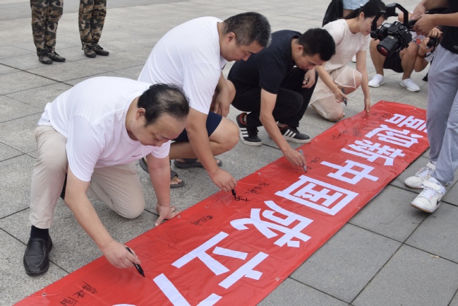 在辅导员的领誓下,全体新生做了“喜迎新中国成立70周年,争做新时代文明农林大人”的倡议承诺,承诺将自觉做到十个“不”,养成良好习惯,做最好的自己,携手建设更加美丽、和谐、文明的农林大校园,并依次在倡议横幅上签名。