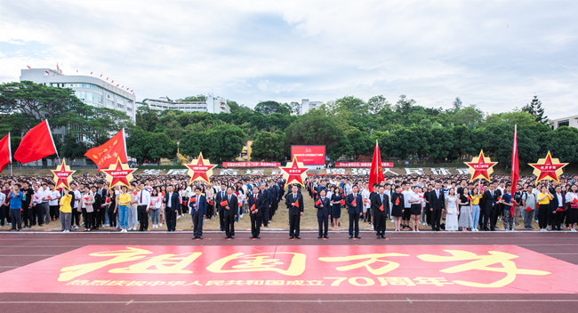 校领导严金静、兰思仁、庄祥生、曾华平、黄炎和、郑宝东、郑郁善,学校中层干部、全体辅导员、各学院师生代表近5000人参加了升旗仪式,向伟大祖国致敬献礼。