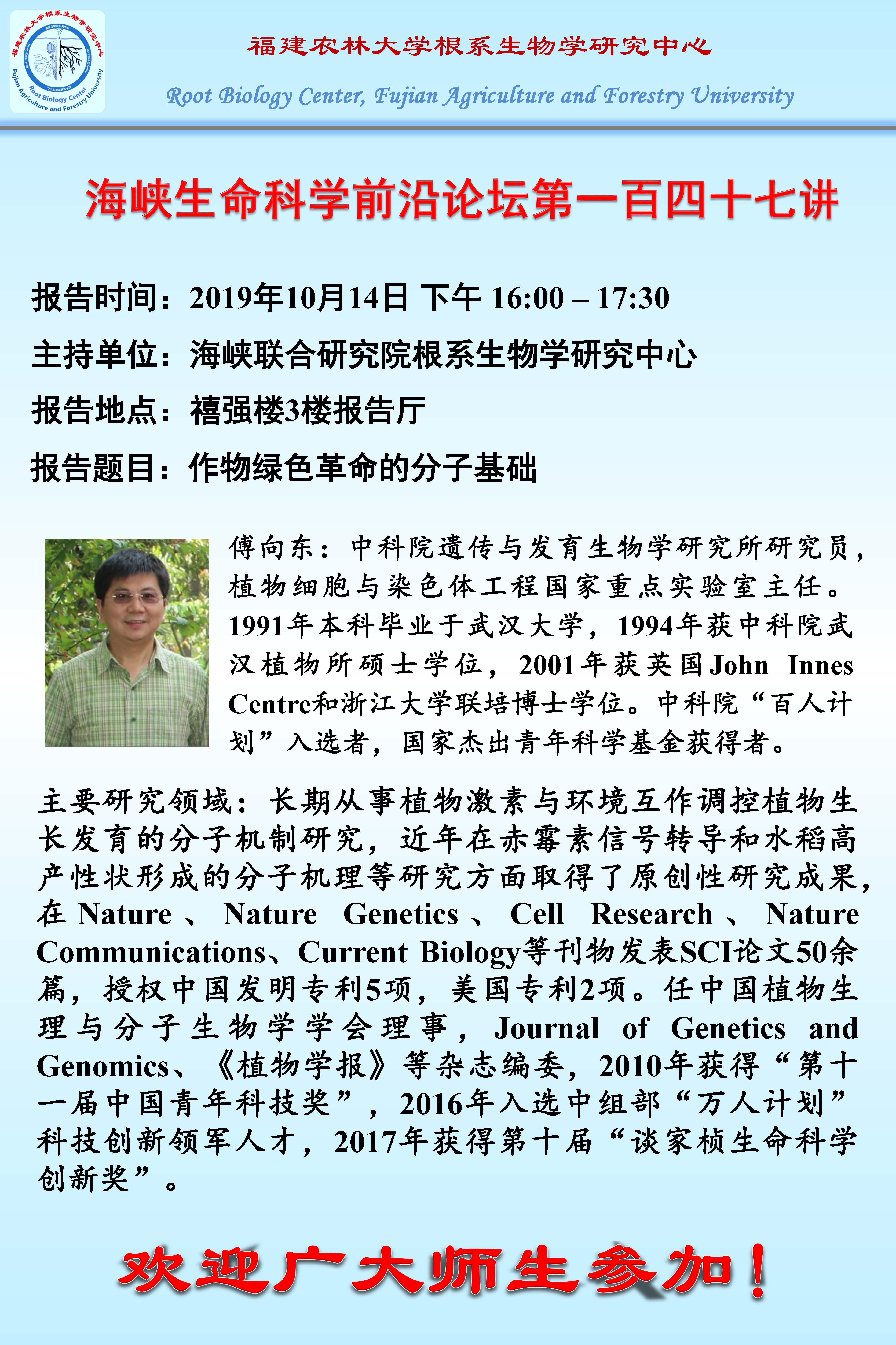 海峡生命科学前沿论坛第147讲(2019.10.14)-作物绿色革命的分子基础