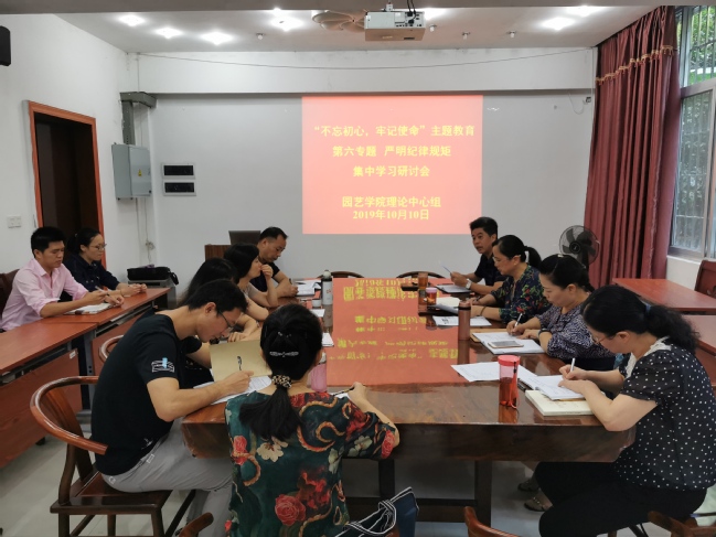 10月10日,园艺学院党委召开理论中心组扩大会议,开展“不忘初心、牢记使命”主题教育第六专题集中学习研讨。与会人员围绕“严明纪律规矩”这一主题进行研讨交流。会议由院党委书记张华英主持,院长陈清西、副院长曾黎辉分别作重点发言。院党委理论中心组成员、全体教工党支部书记参加了学习会。