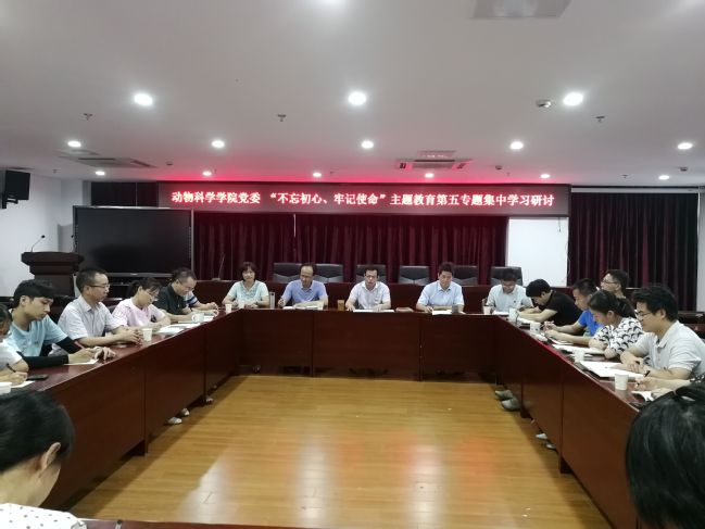 10月11日,动物科学学院党委在学院会议室召开党委理论中心组扩大会议,开展“不忘初心、牢记使命”主题教育第五专题集中学习研讨。学院党委委员、民主党派和无党派代表、各党支部书记、各系主任、全体科级干部、辅导员、学生党员代表参加了学习会。会议由院党委副书记(主持工作)黄毅军主持。