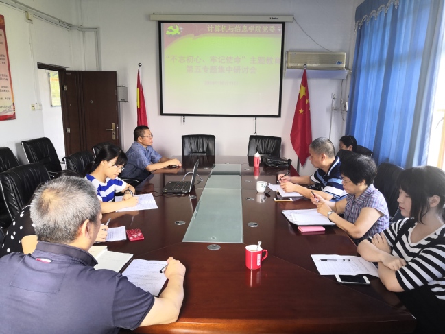 10月10日和11日上午,计算机与信息学院党委开展“不忘初心、牢记使命”主题教育第五专题集中学习研讨。学院党委理论学习中心组成员、领导班子成员和党支部书记参加了研讨会。会议由学院党委书记孙淑芹主持。