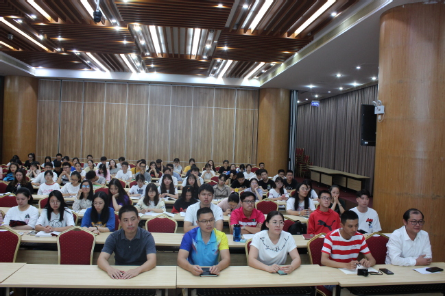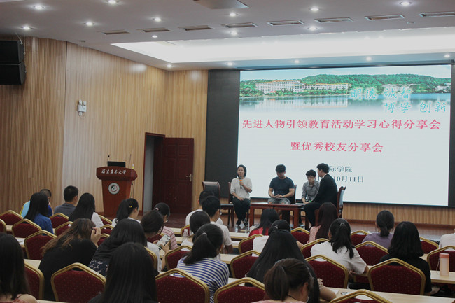 10月11日晚,国际学院在常盛会议中心举办先进人物引领教育活动学习心得分享会暨优秀校友事迹分享会。潘雪、高沈辉、傅旻昊、陈黄亦锌和马凯镇5位优秀校友,学院党委副书记叶扬捷、辅导员和2019级新生代表120余人参加了此次活动。分享会由2017级生态学中加班王云翰同学主持。