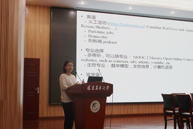 2003级园艺中加班优秀校友,阿尔伯塔大学博士毕业生潘雪鼓励2019级新生:“勇于尝试,保持自信”、“机会只留给准备好的人”、“适合自己的才是最好的”。