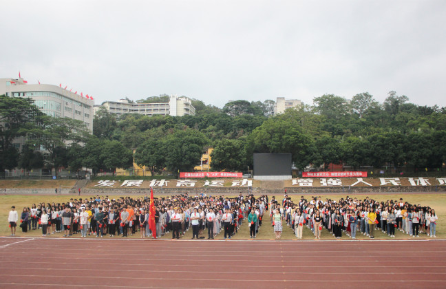 10月14日清晨,国际学院在田径场举行升国旗仪式。学院全体党政领导、教职员工、全体学生800余人参加仪式,向国旗致敬,接受爱国主义教育。