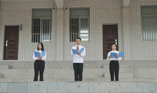 升旗仪式后,学生代表以诗朗诵《新时代的号角》为题开展“国旗下的讲话”,表达了国际学院全体师生的满腔赤诚爱国热情,传递出为党育人、为国育才的坚定决心和成才报国的坚定志向。